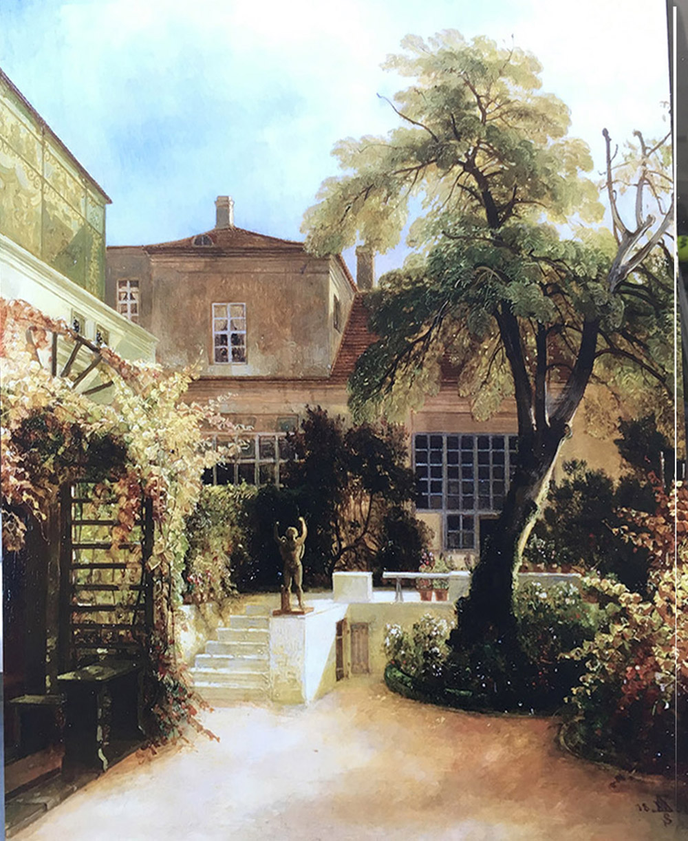 The starting point of my design is Schirmer's painting of Shadow's garden from 1838 with the studio window depicted on it and the sculpture of Cupid that was once located there.