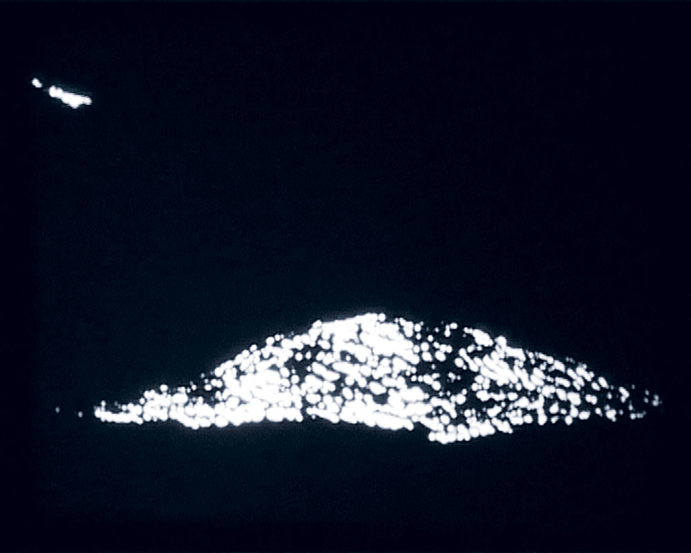 In Staub auf eine Glasplatte geritzt, ergeben sich Lichtzeichen. Das durchbrechende Licht erzählt von Fra Angelico und Raffael, den Lichtern der Großstadt und der Weite Arkadiens. Der Staub verweht und ordnet sich neu.