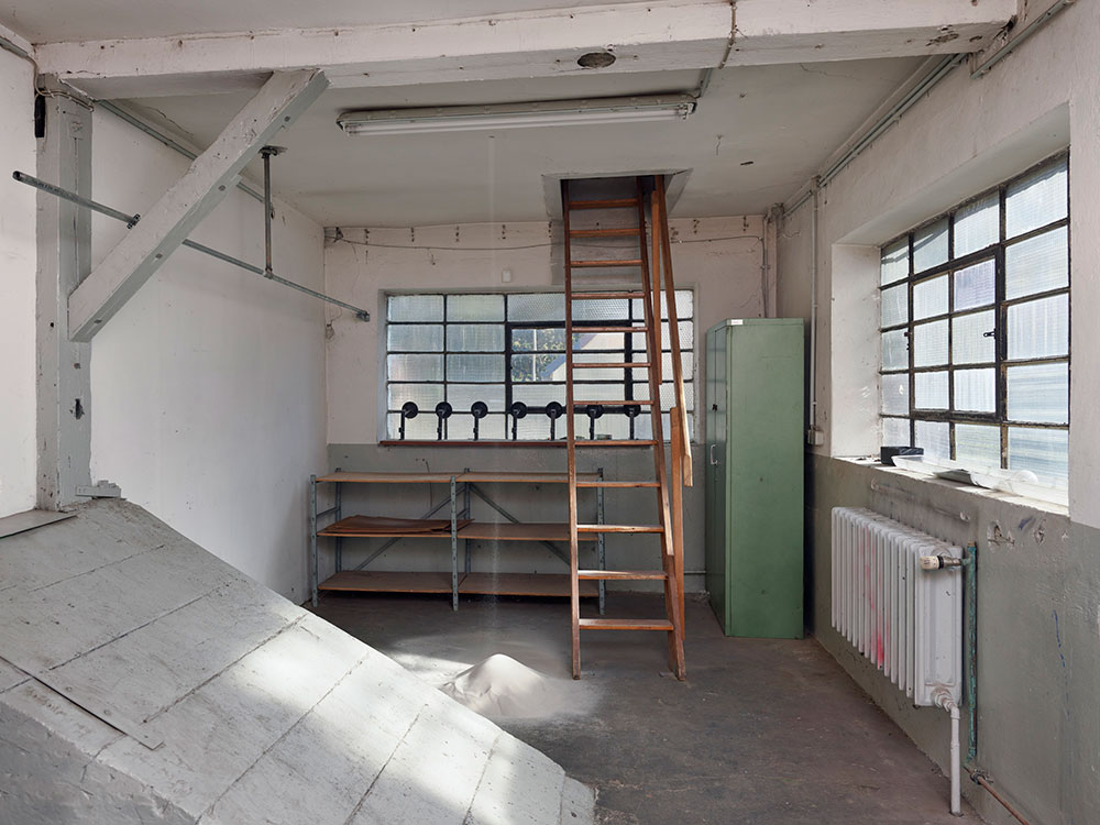- Im unveränderten Raum rieselt über Tage hinweg Sand von der Decke und bildet auf dem staubigen Boden einen kleinen Haufen.